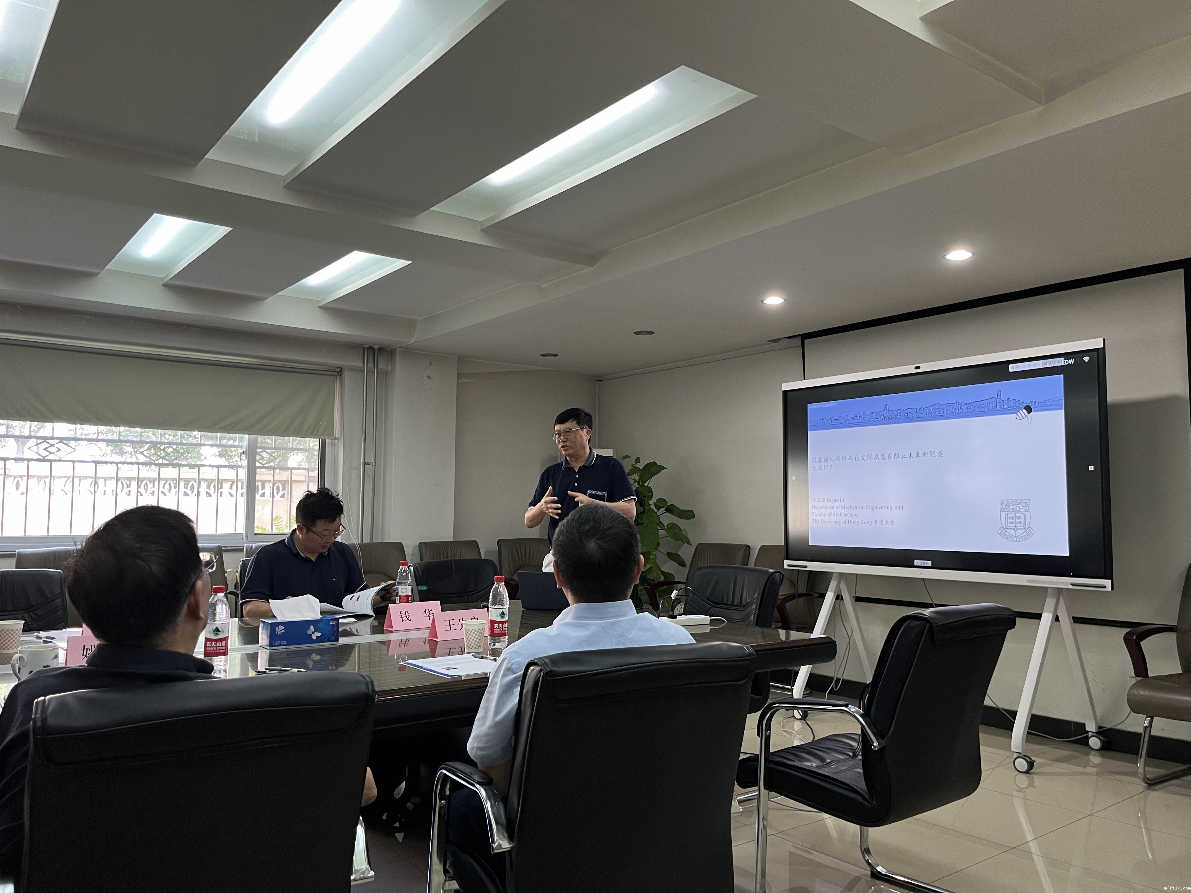 来访专家随后前往室内环境与健康监测团队继续开展进一步研讨交流。东南大学钱华教授介绍了IETS室内环境与热管理研究团队的最新成果;北京工业大学张楠教授分享了智慧消毒与净化机器人等创新技术研发情况;室内环境室韩旭、杜航、樊琳三位同志分别围绕公共场所卫生、室内环境健康调查业务进展和科研探索进行了报告。双方通过深入讨论交流,初步达成合作研究的共识和意愿。