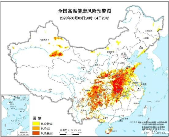 国家疾病预防控制局、中国气象局8月3日18时联合发布高温健康风险预警: